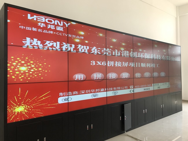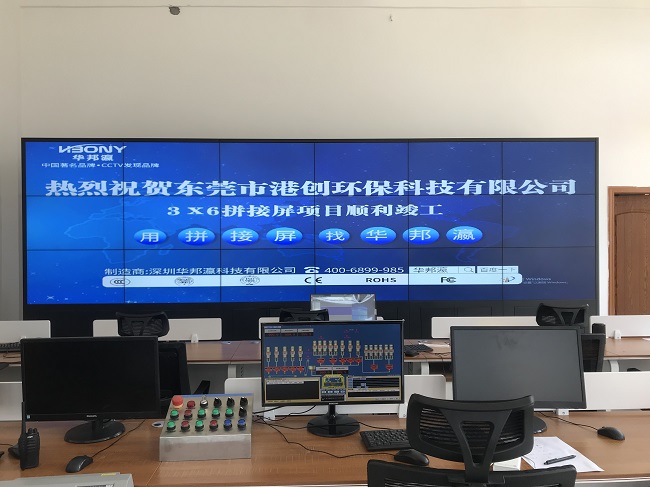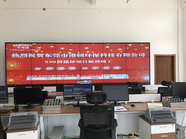 For a monitoring system that operates continuously, the durability, durability, low consumption and energy saving of the equipment are necessary conditions to ensure the high-pressure operation of the monitoring system. The 55-inch 1.8mm LCD splicing screen can ensure long-term safety monitoring of the plants, vehicles and personnel of Dongguan Gangchuang Environmental Protection Technology Company, effectively reducing operating costs.